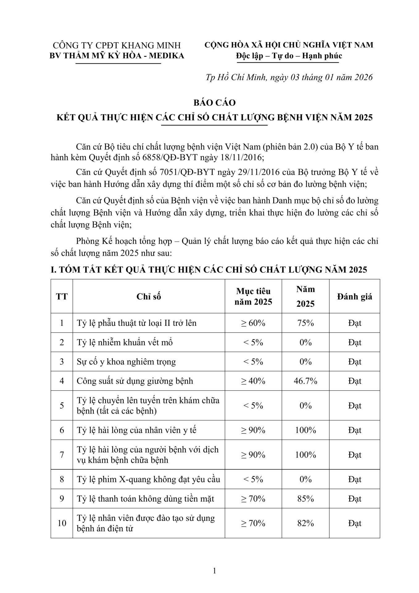 Trang chủ » Tin tức » Đánh giá chất lượng bệnh viện » Báo cáo kết quả thực hiện chỉ số chất lượng 2025