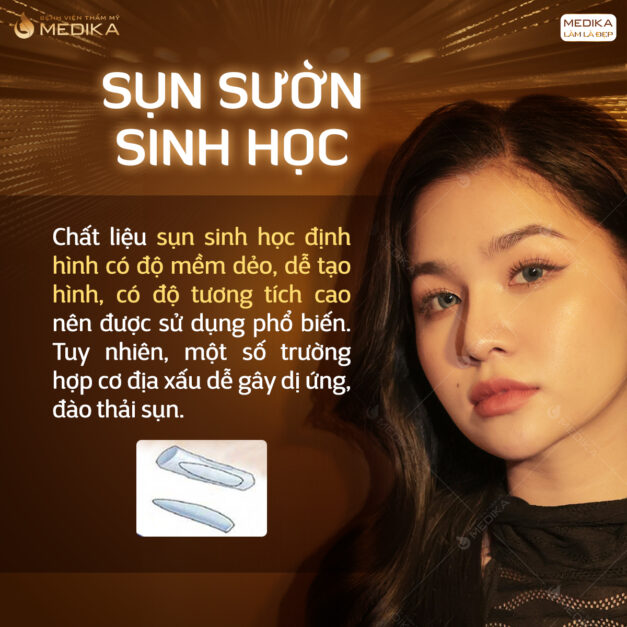Sụn sinh học: là loại sụn kết hợp giữa sụn tự thân và các vật liệu bán sinh học như Polyethylene và ePtfe. Có độ mềm dẻo và đàn hồi khá tốt.